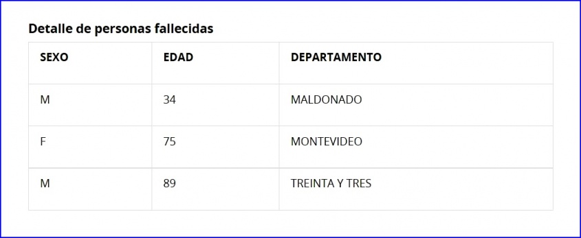 Hoy se confirmaron 3 fallecimientos con diagnóstico de SARS-CoV-2 en nuestro país (se anexa tabla con detalle). Hasta el momento son 6.044 las defunciones con diagnóstico de COVID-19 en Uruguay.
