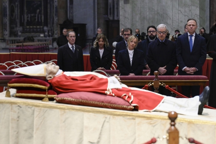 En representación de Alemania, patria natal de Ratzinger, está el canciller alemán, Olaf Scholz, y el presidente de ese país, Frank-Walter Steinmeier, y por parte de Italia, el presidente Sergio Mattarella y la primera ministra Giorgia Meloni.