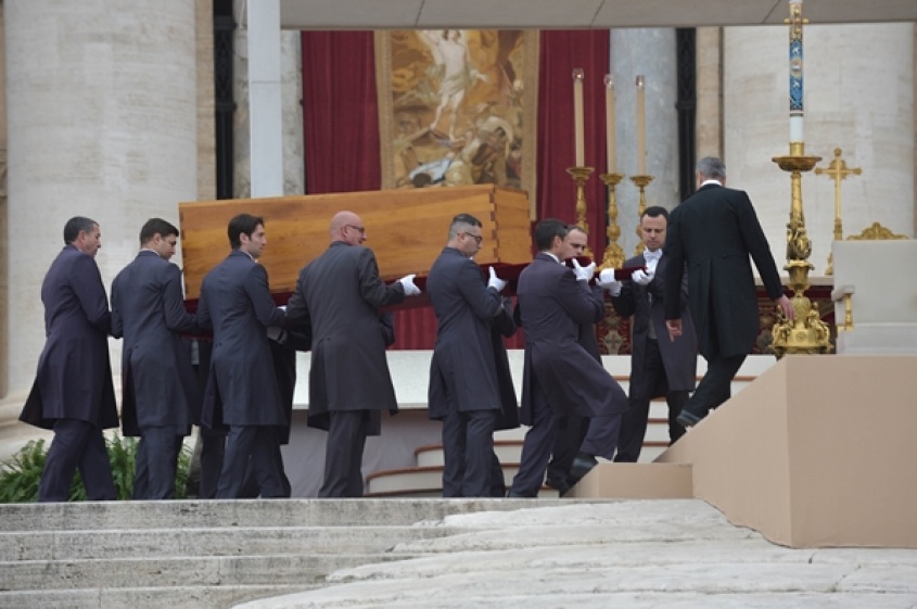 En concreto, a las 10:53 horas, un grupo de doce sediarios, los antiguos portadores de la Silla Gestatoria de los Papas, lo han introducido de nuevo en la basílica de San Pedro y a las 12,38 horas se ha anunciado que ya había concluido la sepultura.