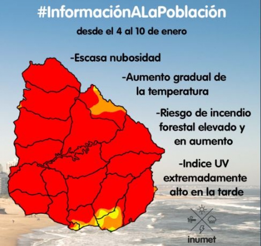Desde el Inumet se informa a la población que se prevé, para los próximos días, un aumento gradual de la temperatura, al menos hasta el próximo martes 10 de enero.
