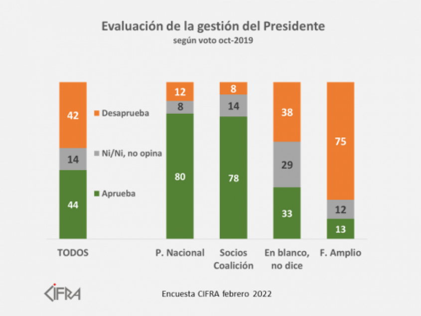 En síntesis, a tres años de gobierno el presidente tiene un índice de aprobación “intermedio” si se lo compara con los presidentes anteriores de este siglo: está en una posición peor que los mejor evaluados, Vázquez en su primer gobierno y Mujica, y está en una posición mejor que los peor evaluados, Batlle y Vázquez en su segundo período. Quedan aún dos años de gestión por delante. Son dos años diferentes, porque siempre aparece tempranamente la campaña electoral, y los temas de gobierno suelen pasar a segundo plano en la agenda de los políticos y de los medios. Pero eso no quiere decir que el electorado se olvide de cómo se desempeñan las autoridades nacionales. No es casualidad que los cambios de partido de gobierno se dieron en 2005 y 2020, después de dos gobiernos mal evaluados por la mayoría de la población. El gobierno actual hoy divide, pero el balance es aún positivo. Habrá que ver cómo evoluciona en los próximos meses porque de ello depende, al menos en parte, quién tiene más chance de ganar las elecciones de 2024, señala la empresa Cifra en su página web.