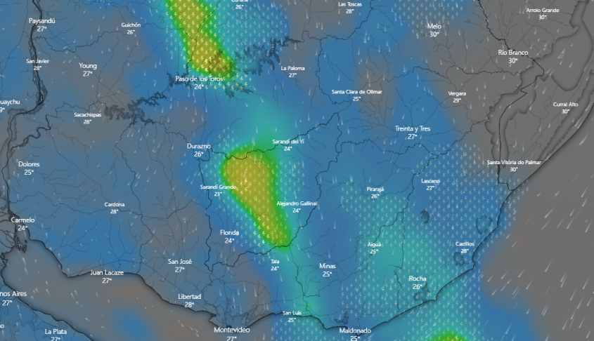 Mientras rige una alerta amarilla por persistencia de tormentas y lluvias en una gran parte del Uruguay, se conoció que en Marmarajá, Lavalleja cayeron 93.0 mm en las ultimas 24 horas.