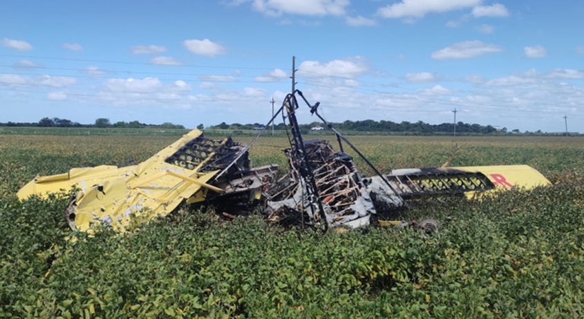 El avión que conducía, fumigaba una plantación, cuando se enganchó entre cables de alta tensión y se precipitó a tierra.