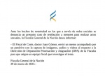 Ante esta situación, el fiscal de Corte, Juan Gómez, "envió un memo acompañado por un pendrive con la captura de imágenes, audios y videos al respecto a la Dirección de Depuración Priorización y Asignación (DPA) de la Fiscalía para que asigne un equipo fiscal que investigue el tema", indicó el comunicado.