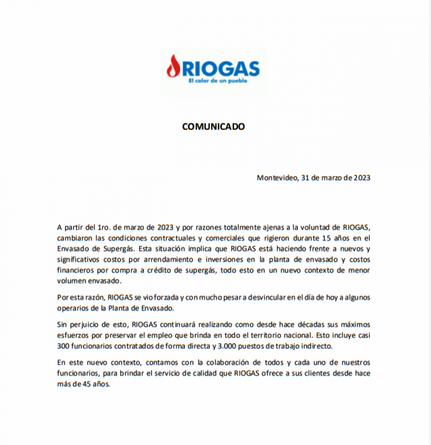 Desde Riogas se libró un comunicado acerca de la situación generada a raíz del envasado del Carburante: