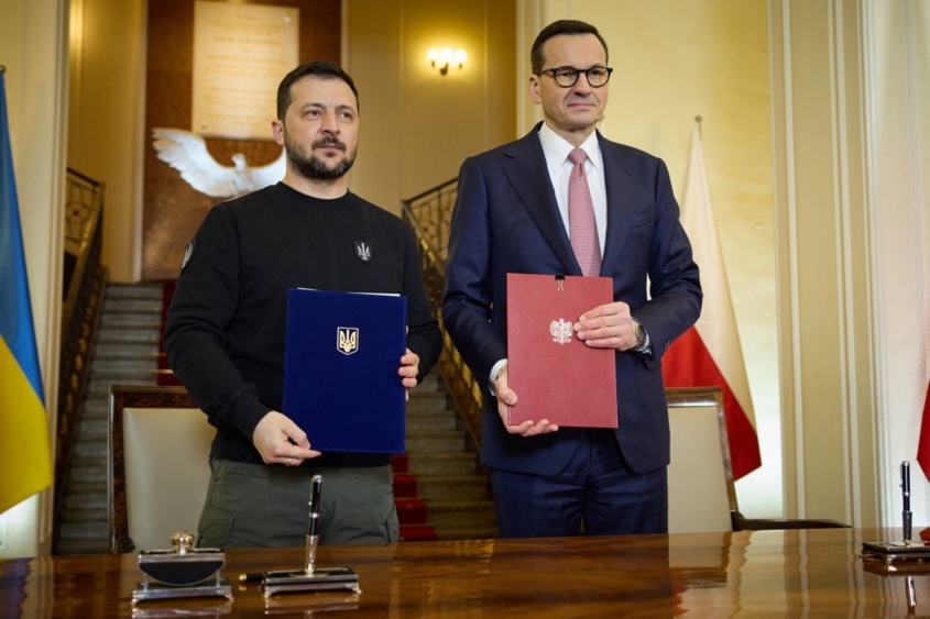El presidente de Ucrania, Volodimir Zelenski, y el primer ministro de Polonia, Mateusz Morawiecki, firmaron un acuerdo con el objetivo de impulsar la cooperación en el suministro de equipos de defensa a Kiev