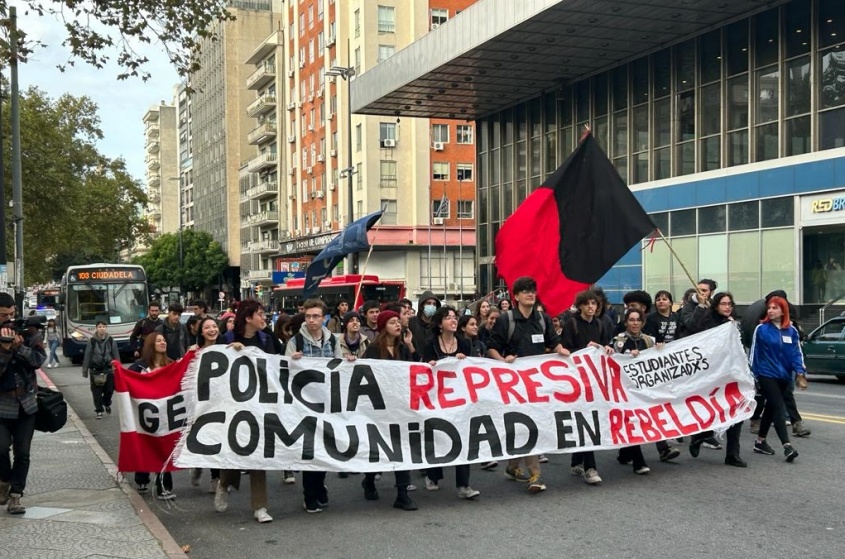 Así informaba nuestro compañero Enzo Villalba a pocos minutos de comenzada la movilización desde la explanada de la Universidad, rumbo a la sede del Codicen de la ANEP: