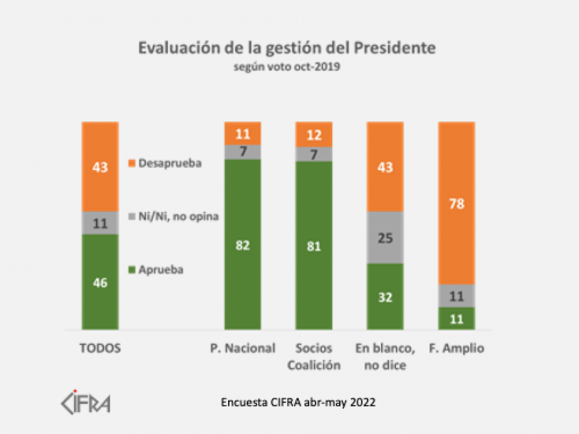La mitad de gobierno suele ser un momento de “auge” de las oposiciones porque la gente critica lo que no se hizo. En esta medición mejora un poco la evaluación de la gestión del Presidente Lacalle Pou, aunque también aumentan (menos) las críticas, señala Cifra.