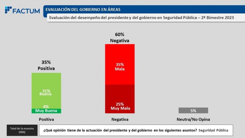 La evaluación del desempeño del presidente y del gobierno en materia de Seguridad Pública en el 2° Bimestre del año se presenta con un saldo negativo.