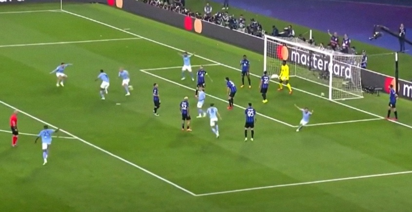 Con el tiempo añadido ya cumplido, el árbitro Szymon Marciniak dejó sacar al Inter un último saque de esquina. Onana subió a 'rascar' lo que fuera, en un maremágnum de futbolistas donde Gosens cabeceó desde el primer poste y puso en serios aprietos a Ederson. No obstante, el arquero brasileño despejó ese balón y también los sueños 'nerazzurri'.