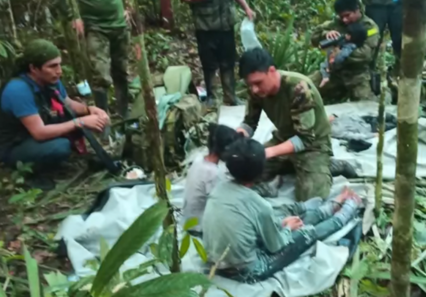 Los menores --de 13 años, nueve años, cuatro años y once meses-- viajaban con su madre y otro acompañante en una pequeña aeronave que sufrió un accidente cuando sobrevolaba el departamento de Caquetá (sur), en una zona selvática. Las autoridades hallaron unas semanas después los cuerpos de los tres adultos, pero encontraron indicios de que los niños seguían con vida.