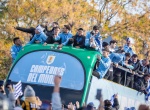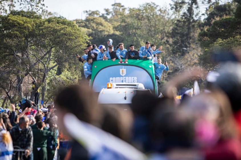 El recorrido del ómnibus abierto que traslado al plantel y cuerpo técnico desde el Aeropuerto Internacional de Carrasco fue seguido por miles de uruguayos en las calles de la capital.