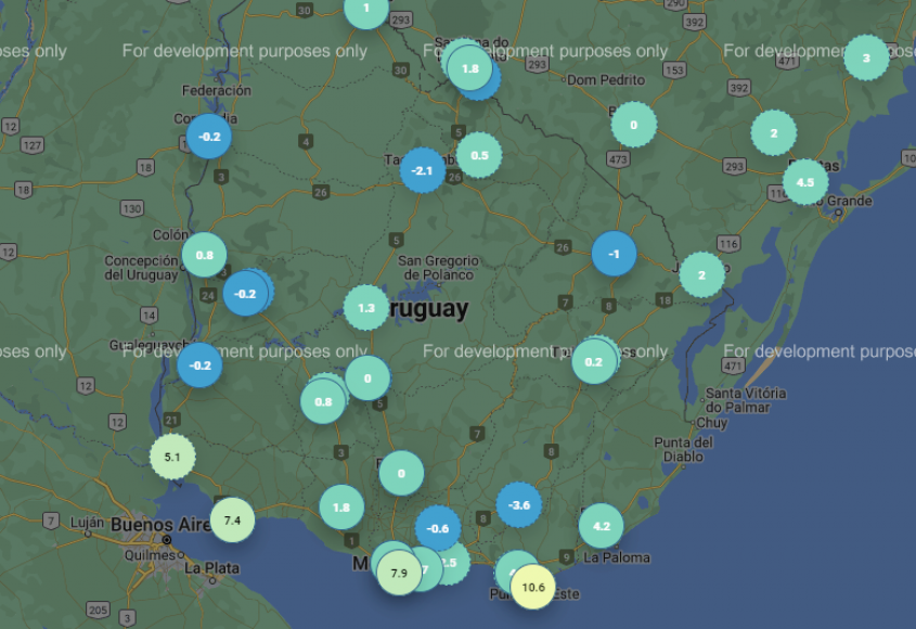 El registro realizado por la estación automática del Instituto Uruguayo de Meteorologia (Inumet) corresponde a las 8 de la mañana de este lunes.