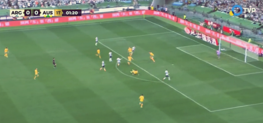 El duelo entró en una fase algo más igualada, con una Australia empeñada en arruinar la fiesta argentina en Pekín. Entonces apareció la figura del 'Dibu' Martínez, que atajó la ocasión más clara para los 'aussie', cuando Mitchell Duke enganchó un remate tras un buen centro desde el lateral, topándose con el meta argentino.