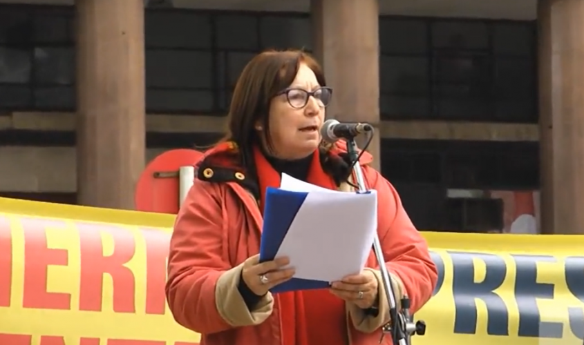 La secretaria general de la Federación Uruguaya de Magisterio (FUM) Elbia Pereira se preguntó ¿por qué si la economía crece, los privilegiados no somos los que hoy estamos acá?.