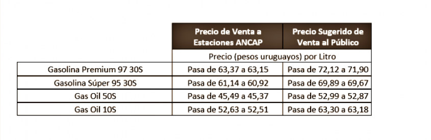 La reducción es como consecuencia del fallo de la Suprema Corte de Justicia sobre la tasa de inflamables aplicada a los despachos de combustible en Montevideo.