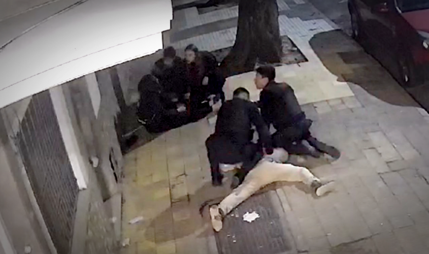 La golpiza e intento de agresión sexual ocurrió la madrugada de este domingo y quedó registrado en las cámaras de seguridad del lugar.