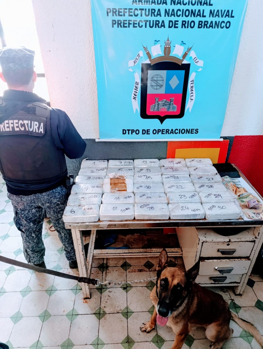 Al momento de inspeccionar el auto, y gracias a la colaboración de los can anti-drogas, se encontraron 32 kgs y 500 gramos de pasta base de cocaína