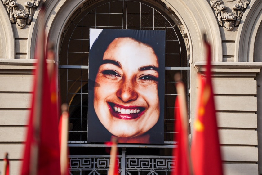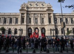 Laura Boiani, de la organización Familiares de Detrenidos Desaparecidos, leyó una nota en nombre de la institución y parientes  de Amelia Sanjurjo, en la hall de la Udelar.