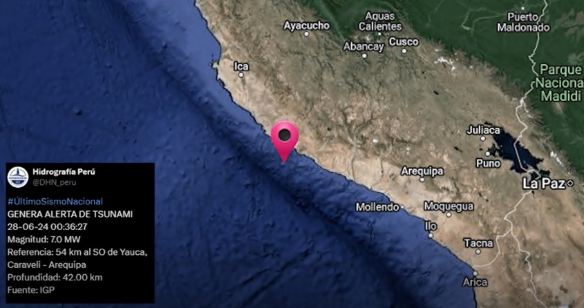 Un terremoto de magnitud 7 en el sur de Perú activó una alerta de tsunami en la costa