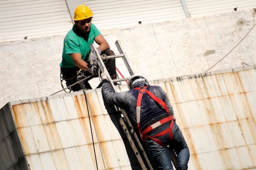 Al finalizar las tareas, se retiran el equipamiento y su compañero, la víctima, olvida algo en el techo por lo que sube y luego cae.
