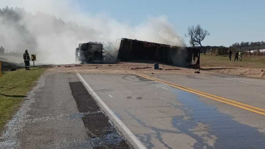 Un choque entre un camión y una camioneta derivó en un incendio, episodio que dejó como saldo un fallecido de 30 años en el kilómetro 34 de la ruta 24, cerca de Nuevo Berlín, en Río Negro.