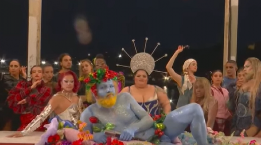 La ceremonia del viernes recibió críticas por una escena de banquete en la que un actor que interpretaba al dios griego Dioniso ocupó el centro del escenario en una mesa con drag queens, en una reinterpretación de la pintura 'La última cena' de Leonardo Da Vinci, sobre la última comida de Jesús con sus apóstoles antes de la crucifixión.