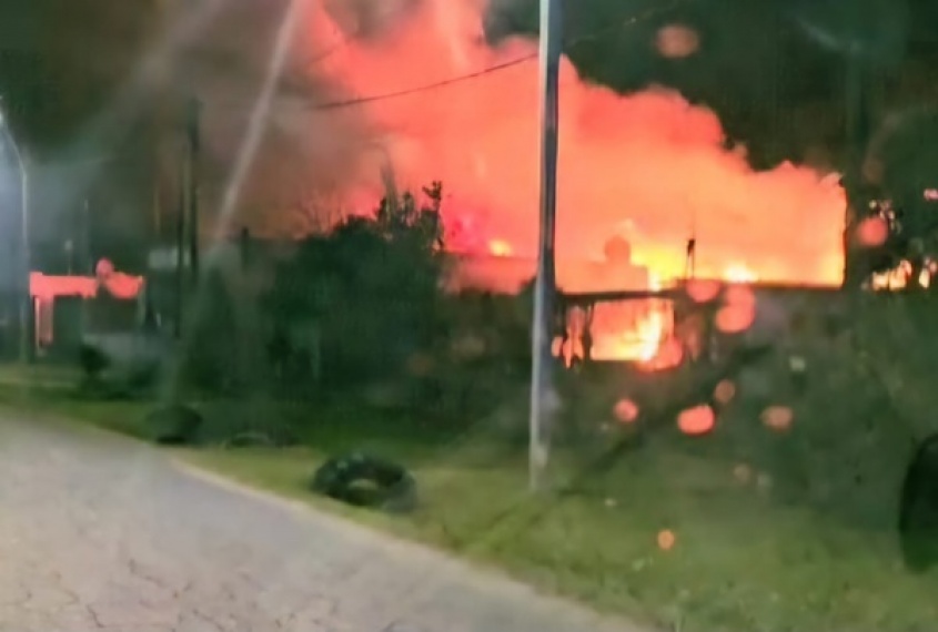 Efectivos policiales realizaron un perímetro de seguridad, mientras que los bomberos de Parque del Plata trabajaron en el combate a las llamas.