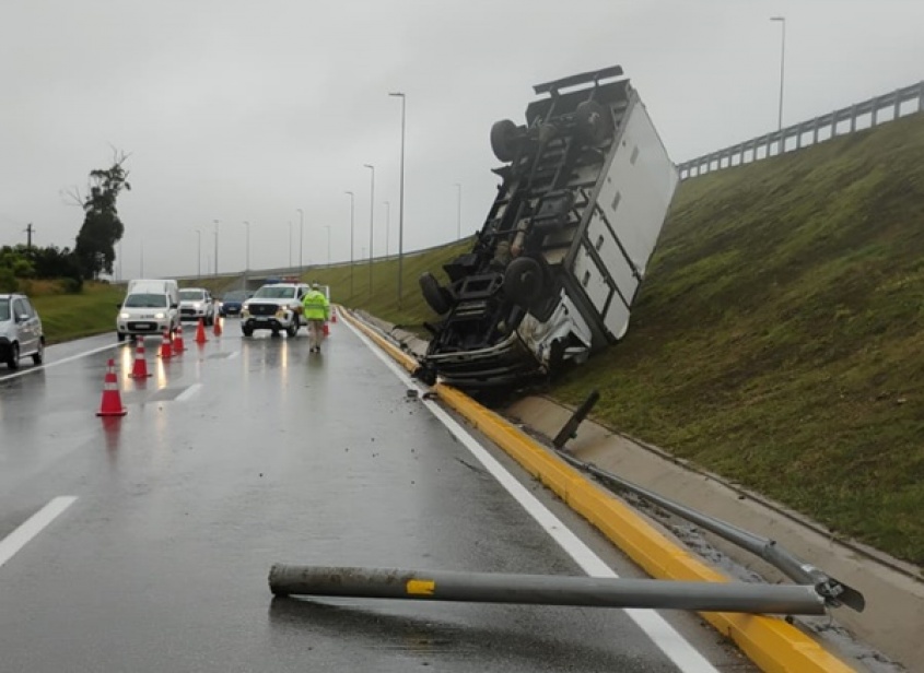 El vehículo quedó sobre faja natural en posición semi invertida.