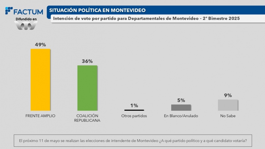 El Frente Amplio lidera las preferencias del electorado para las elecciones departamentales en Montevideo.