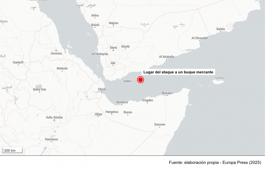 El UKMTO, vinculado a la Armada británica, ha indicado en un comunicado publicado en su cuenta en la red social X que el buque ha "recibido un impacto de un proyectil no identificado que ha provocado un incendio".