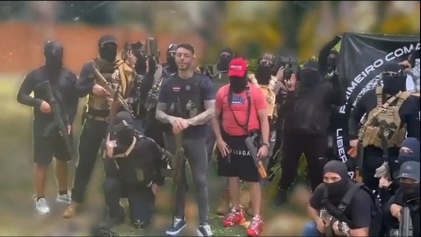 El narco, publicó un video donde se lo ve rodeado por una veintena de personas armadas con armas largas y fusiles de asalto, junto a una bandera del Primer Comando Capital.