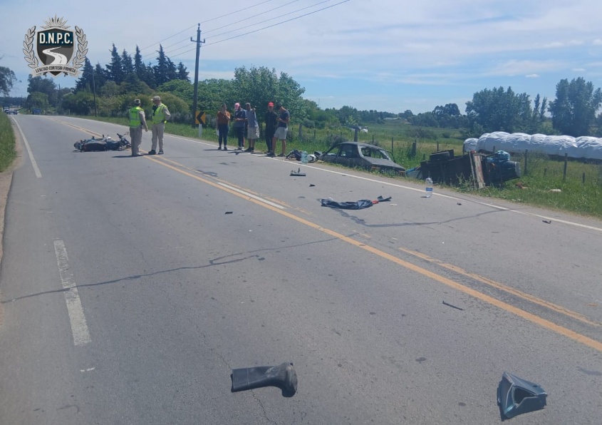 Según la información proporcionada por la Policía Caminera, la moto intentó sobrepasar con la franja amarilla continua, impactando de frente con el auto que circulaba en sentido contrario.
