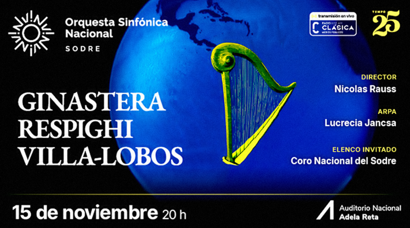 Luego tendremos la oportunidad de escuchar la música del compositor argentino más relevante de su siglo, Alberto Ginastera: con la participación de la arpista cordobesa Lucrecia Jancsa se interpretará su Concierto para arpa.