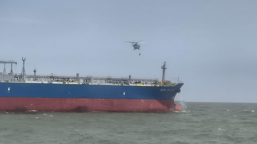 Se trató de una evacuación médica de urgencia a un tripulante del buque tanquero San Julián, fondeado en la Zona de Fondeo y Servicios.