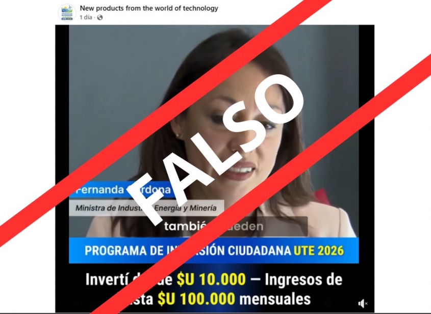 A travès de un video, que manipula la imagen de Cardona a través de inteligencia artificial, se busca estafar a la poblaciòn haciéndole creer que puede invertir en un programa inexistente de la empresa estatal. El mismo se llama “Programa de inversión ciudadana UTE 2026”.