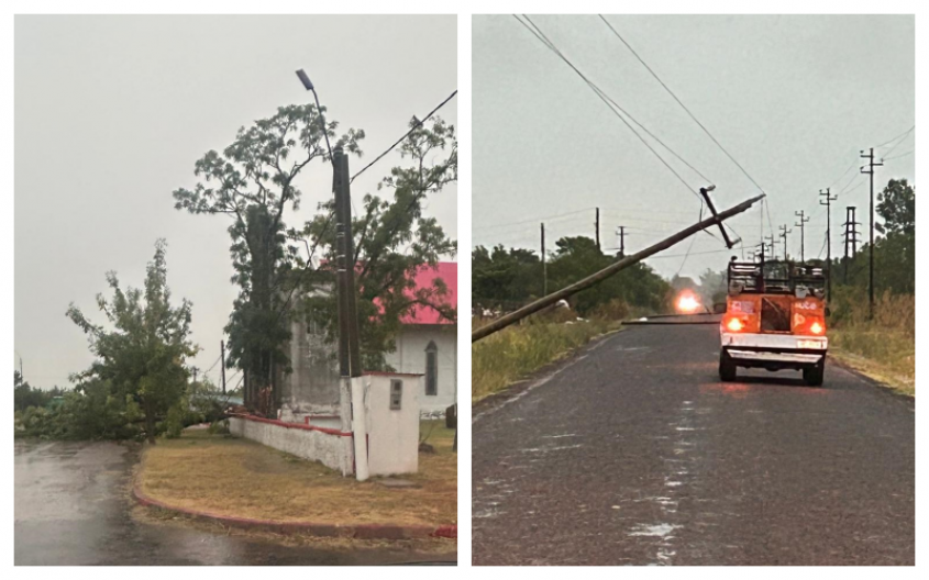 Los daños que se han podido registrar hasta el momento son al menos una veintena de voladuras de techos y la caída de gran cantidad de columnas de tendido eléctrico por lo cual la zona se encuentra sin energía.
