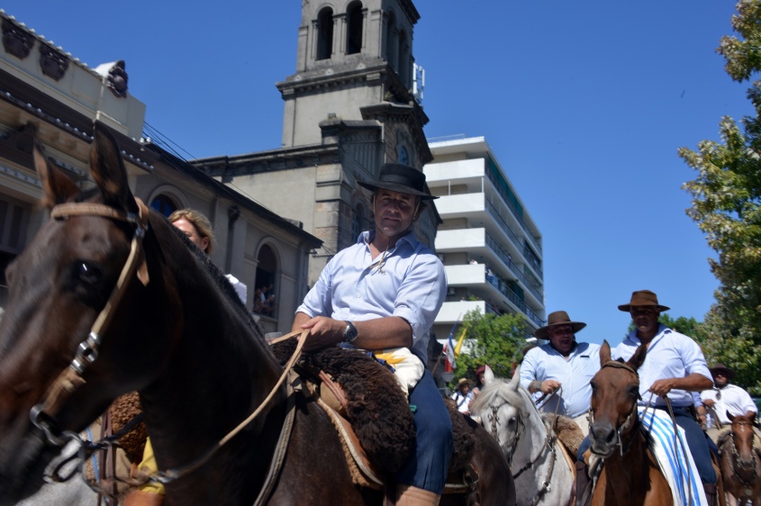 Al pasar por donde estaba Orsi junto al intendente Wilson Ezquerra y otras autoridades, el exmandatario realizó el tradicional saludo gaucho de cortesía.